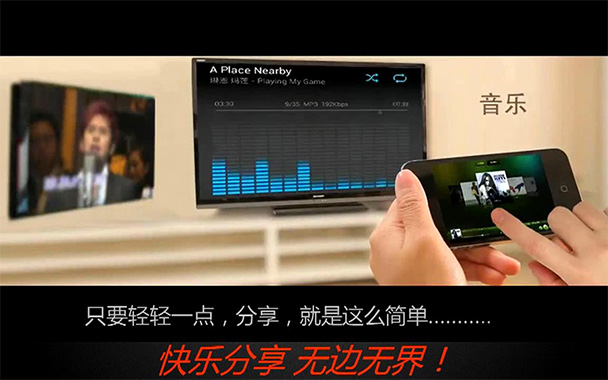 “快乐无线推”为天行视点独有的功能,把手机或平台里的视频/音频/图片通过推送到机顶盒,由机顶盒进行解码播放出来。把珍藏的快乐一起推出来,与朋友一起分享!(无边界版本)